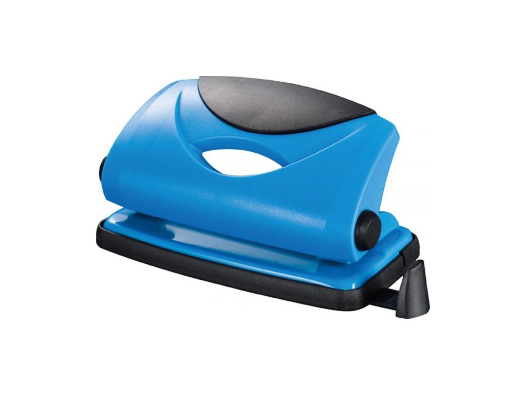 Pevný děrovač s posuvným pravítkem. Plastové provedení, kovový mechanismus, ergonomický design. Rozteč otvorů 8 cm. Kapacita děrování 10 listů. Barva modrá.Doplňkové parametry