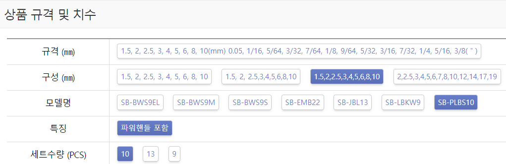 Specifikace SB-PLBS10(1,5~10mm)10P