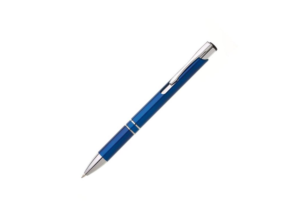 Plastové kuličkové pero OIRA s kovovými doplňky. Modrá náplň velký objem. Barva modrá.Doplňkové parametry