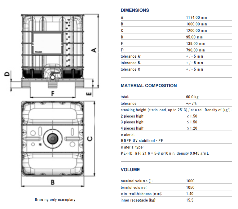 Nádoba IBC 1000L, dřevěná paleta SM6, Natural, schváleno UN Y/1.9