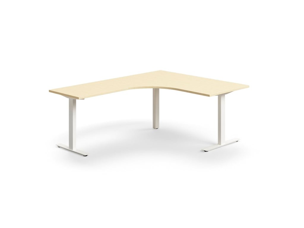 QBUS kancelářský stůl, rohový, 1600x2000 mm, T-rám, bílý rám, bříza