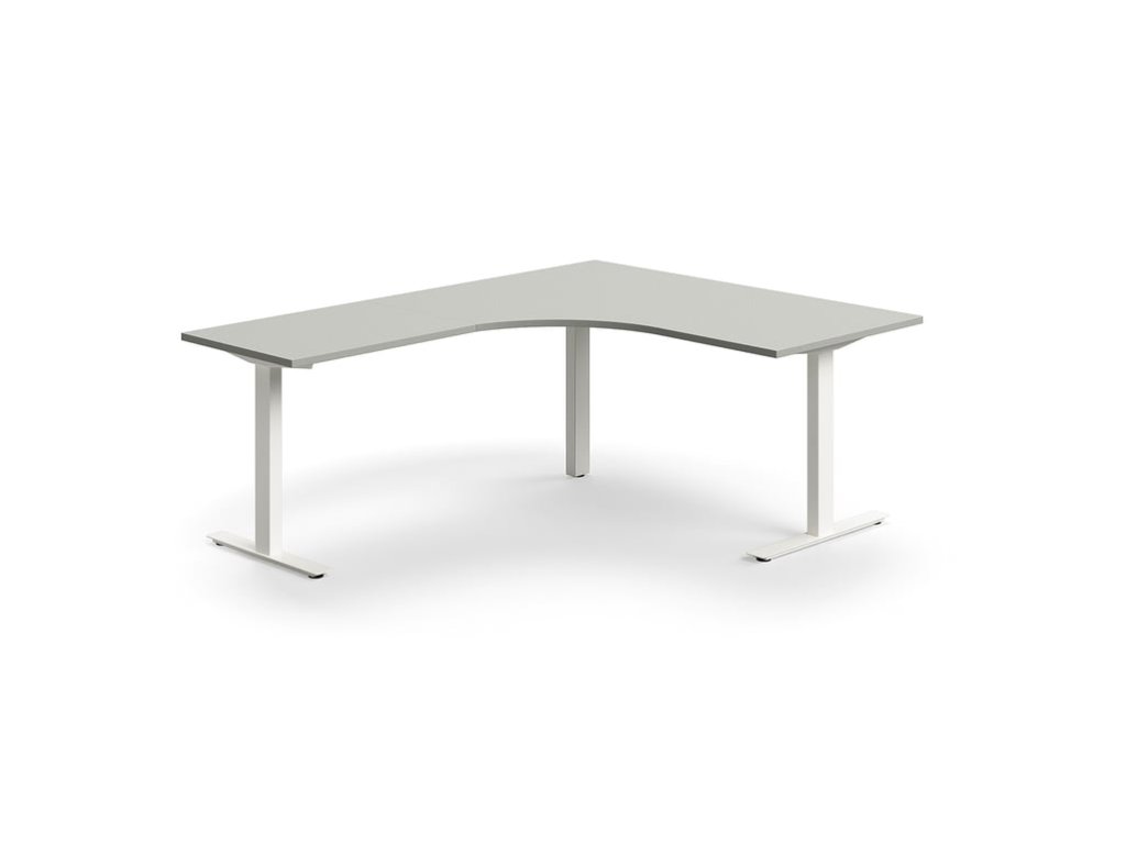 QBUS kancelářský stůl, rohový, 1600x2000 mm, T-rám, bílý rám, světle šedá