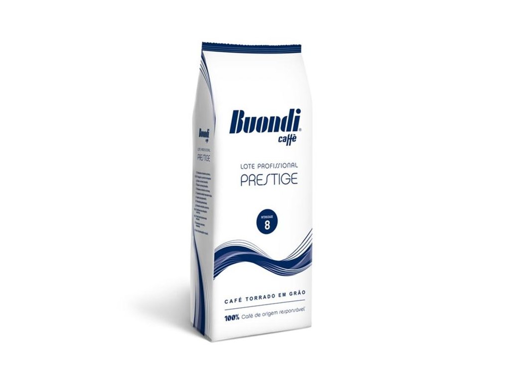 Káva Buondi Caffé Prestige je směs nejkvalitnějších zrn Arabica 75% a Robusta 25%, které pocházejí ze srdce Afriky a Asie. Jeho charakter je dán šetrným a pomalým procesem pražení v portugalském Portu. Buondi Prestige se vyznačuje intenzivní, perzistentní a velmi vyváženou vůní. Výrazná a plná chuť, ve které se snoubí příjemná sladkost s jemnou kyselinkou, je doplněna podmanivým aroma, které zanechává lehký nádech mandlí a hořké čokolády.Složení: