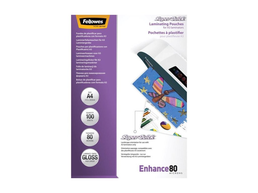 Laminovací fólie Fellowes 216x303 A4 80mic Superquick