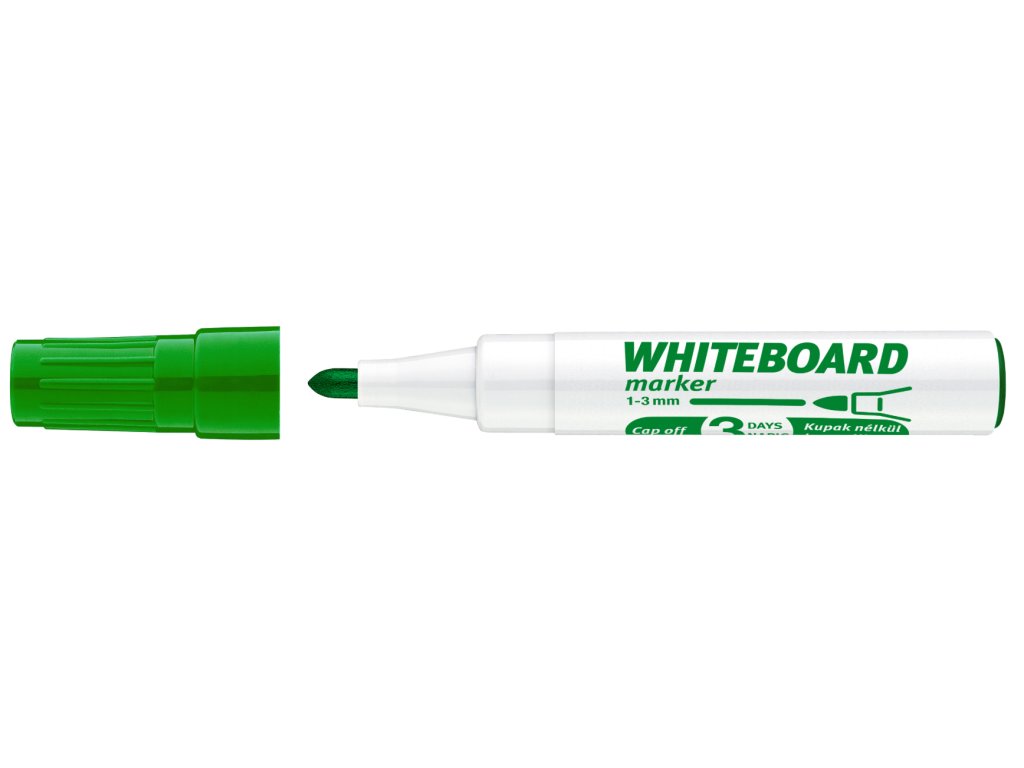 Dieser Marker eignet sich zum Schreiben und Zeichnen auf Whiteboards. Die Schrift lässt sich abwischen. Er ist mit abwaschbarer Tinte gefüllt und trocknet daher auch nach mehrtägigem Gebrauch ohne Kappe nicht aus. Strichstärke: 3 mm.