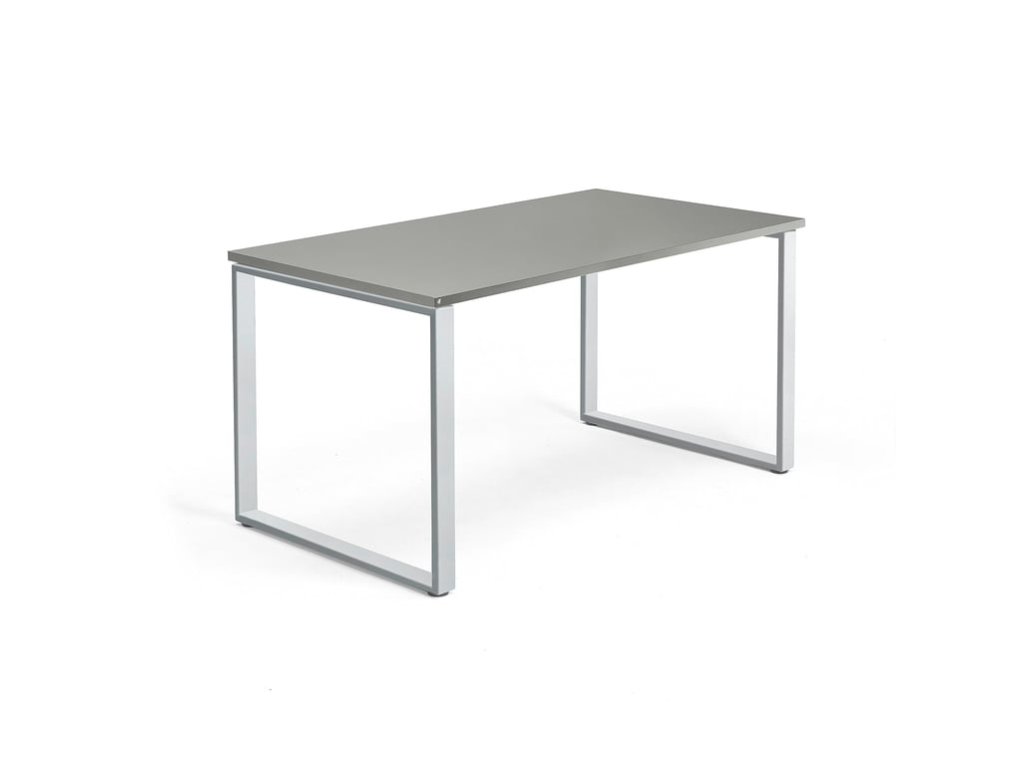 QBUS Büroschreibtisch, O-Gestell, 1400x800 mm, Silber, Hellgrau