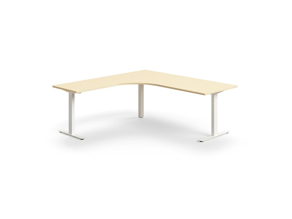 QBUS Büroschreibtisch, Ecke, 2000x2000 mm, T-Gestell, weißes Gestell, Birke