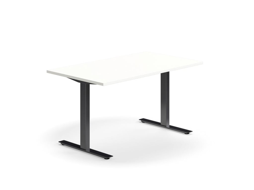 QBUS Büroschreibtisch, gerade, 1400x800 mm, T-Gestell, Gestell schwarz, weiß