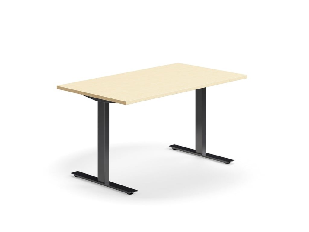 Büroschreibtisch QBUS, gerade, 1400x800 mm, T-Gestell, schwarzes Gestell, Birke