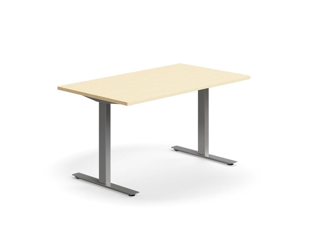 Büroschreibtisch QBUS, gerade, 1400x800 mm, T-Gestell, Gestell silber, Birke