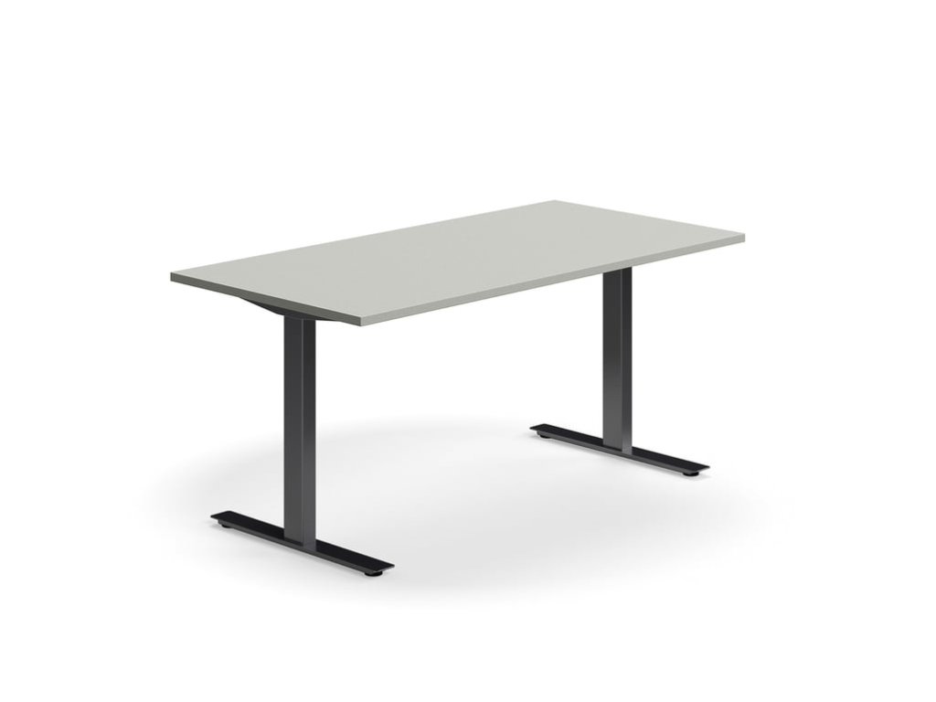 QBUS Büroschreibtisch, gerade, 1600x800 mm, T-Gestell, Gestell schwarz, hellgrau
