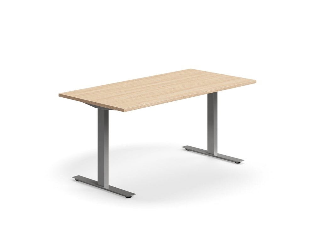 QBUS Büroschreibtisch, gerade, 1600x800 mm, T-Gestell, Gestell silber, Eiche