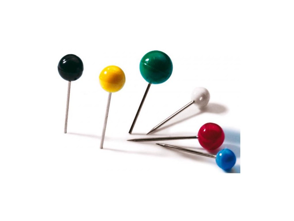Stecknadeln zum Markieren von Punkten auf Karten, Plänen, Organisations- und Anschlagtafeln. Kopfdurchmesser 6 mm, Beinlänge 15 mm. Verpackung in einer Farbmischung.Farbe: Farbmischung