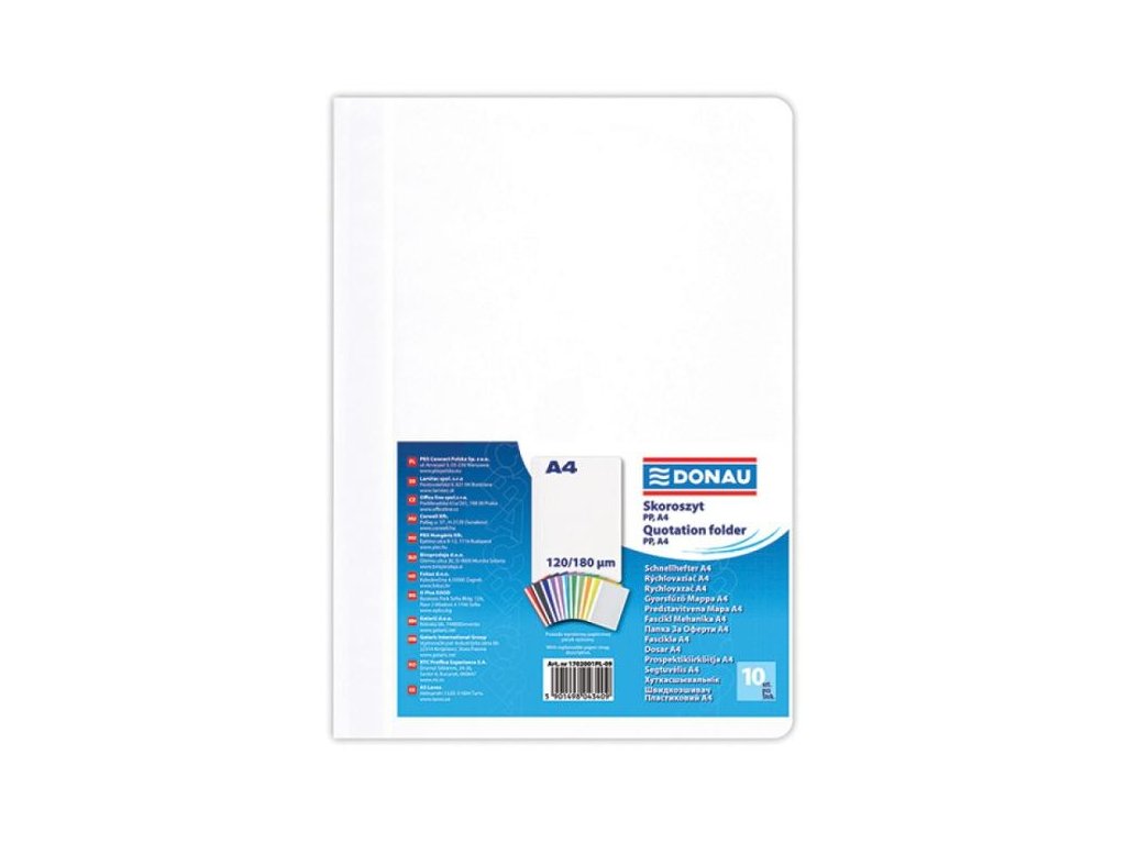 Standard-Schnellbinder aus Polypropylen mit transparenter Vorderseite und aufsteckbarem Etikettenstreifen. A4-Format. Packung mit 10 Stück.Farbe: weiß