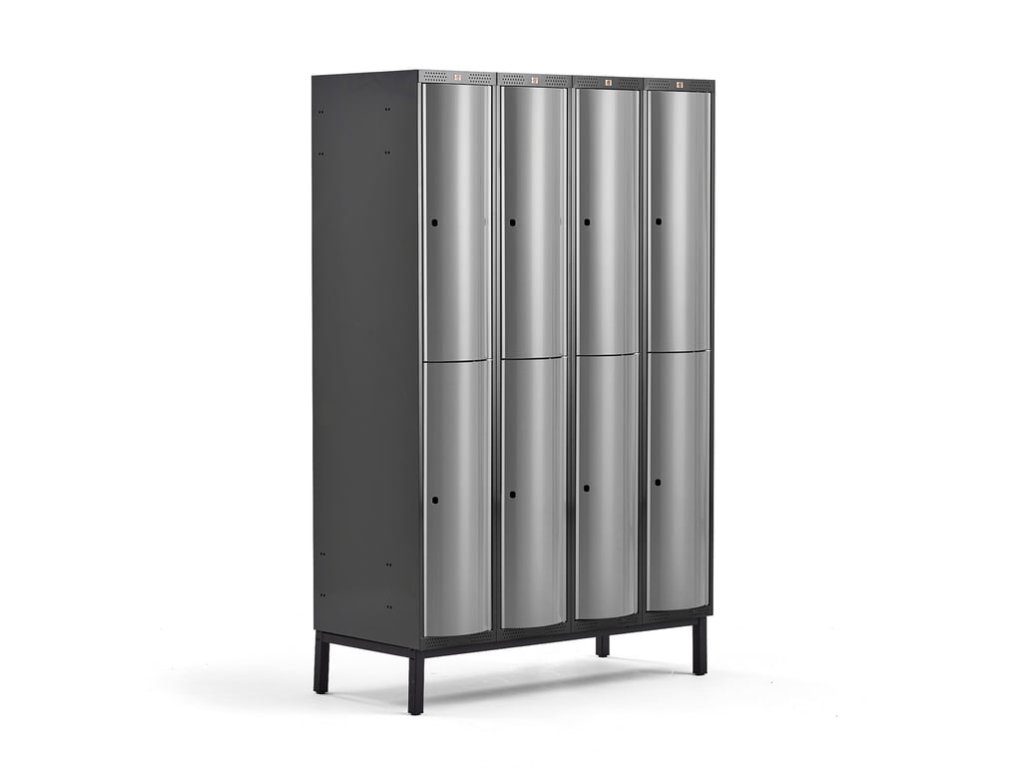 Ein Kleiderschrank mit konvexen Türen und einem Rahmen auf Beinen. Jeder Ordner verfügt über eine Aufhängestange mit zwei Doppelhaken, einen Öffnungsbegrenzer und ein Fach an der Tür. Belüftungslöcher im oberen und unteren Teil. Schlösser sind separat zu bestellen. Elegante Schränke mit ihrem einzigartigen Design verleihen jedem Interieur Stil. Konvexe Türen in Metallic-Farben wirken modern und eignen sich für Eingangsbereiche und Garderoben. Sie sind ideal für mehrere Benutzer in Räumen mit begrenztem Platzangebot. Sie eignen sich für Umkleideräume für Mitarbeiter, private Fitnessstudios und Sportzentren. Sie können sie sogar im Eingangsbereich platzieren und so den Besuchern einen Platz zum Aufhängen von Kleidung und zur Aufbewahrung von Wertgegenständen bieten. Sie können in den Eingangsbereichen platziert werden und ermöglichen den Besuchern so eine einfache und schnelle Aufbewahrung ihrer Kleidung. Die Kleiderschränke sind gut ausgestattet und bieten alles, was Sie von Kleiderschränken erwarten. Das Fach an der Tür eignet sich besonders zur Aufbewahrung kleinerer Gegenstände, z.B. Toilettenartikel und Schlüssel. Die Belüftungslöcher im oberen und unteren Teil des Skeletts tragen zur ordnungsgemäßen Luftzirkulation und zum Abtransport von Feuchtigkeit bei. Die Schränke verfügen über ein vollverschweißtes Stahlskelett mit einer Stärke von 0,7 mm. Konvex geformte Türen verfügen über Gummistopper für geräuschloses Schließen. Der Schrank wird mit einem praktischen Gestell auf schwarz pulverbeschichteten Stahlbeinen und Richtfüßen geliefert. Ein Rahmen mit Beinen hebt die Schränke vom Boden ab und erleichtert so den Zugang zum Boden und die Reinigung unter dem Schrank. Dies ist besonders nützlich in Umgebungen, in denen Hygiene wichtig ist. Schlösser werden separat bestellt. Wählen Sie den Typ, der Ihren Anforderungen entspricht.Seien Sie der Erste, der einen Beitrag über diesen Artikel schreibt.