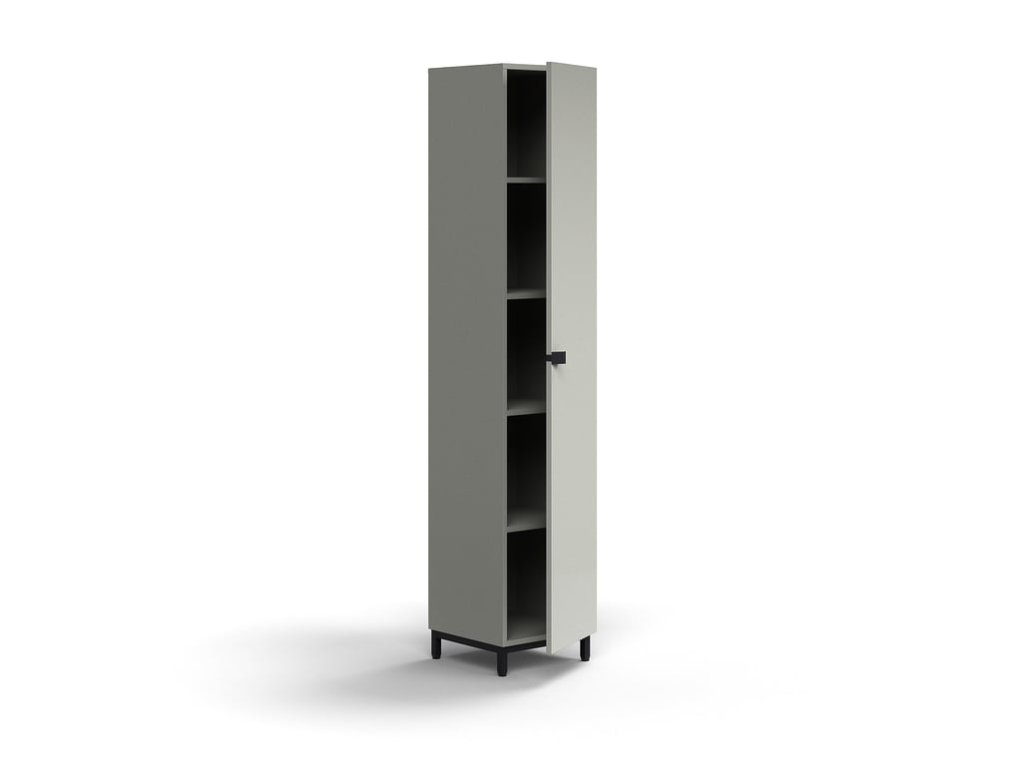 Moderner Schrank mit Türen, entworfen von AJProdukty. Es kann mit anderen Produkten aus der QBUS-Möbellinie kombiniert werden, um eine Aufbewahrungslösung mit einheitlichem Erscheinungsbild zu erhalten. Der Schrank ist ideal für Büros, Konferenzräume und Empfänge. Mit der anpassbaren QBUS-Möbellinie lässt sich ganz einfach ein organisierter Arbeitsplatz schaffen. Dieser praktische Schrank ist ideal für die Aufbewahrung von Büchern und Akten bis hin zu Büromaterial oder anderen Gegenständen, die Sie vor anderen verstecken und immer griffbereit haben möchten. Der Schrank ist vielseitig einsetzbar und eignet sich dank seines stilvollen Designs für Eingangsbereiche, Büros, Garderoben oder Konferenzräume. Es besteht aus Laminat, einem langlebigen und pflegeleichten Material. Laminat ist in mehreren Farben erhältlich. Der Grundrahmen und der Griff sind im Lieferumfang enthalten. Der Griff hat ein elegantes Design und eine gute Griffigkeit, sodass er unabhängig davon, ob Sie ihn vertikal oder horizontal montieren, einfach zu bedienen ist. Es kann in jeder Position montiert und vertikal oder horizontal platziert werden. Der Griff besteht aus Stahl mit Pulverbeschichtung. Die Pulverbeschichtung sorgt für eine harte und langlebige Oberfläche, die sich ideal für Möbel eignet, die täglich genutzt werden. Benötigen Sie mehr Lagerraum? Möbel aus der QBUS-Linie sind so gefertigt, dass die einzelnen Stücke miteinander harmonieren, während Sie dank des modularen Konzepts bei Bedarf problemlos zusätzlichen Stauraum hinzufügen können. Und das alles, damit Sie den ganzen Tag über effizient arbeiten können.Seien Sie der Erste, der einen Beitrag über diesen Artikel schreibt.