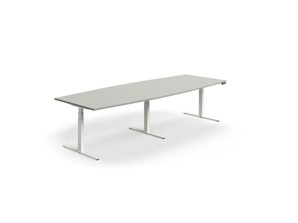 Höhenverstellbarer Besprechungstisch QBUS, oval, 3200x1200 mm, Gestell weiß, hellgrau