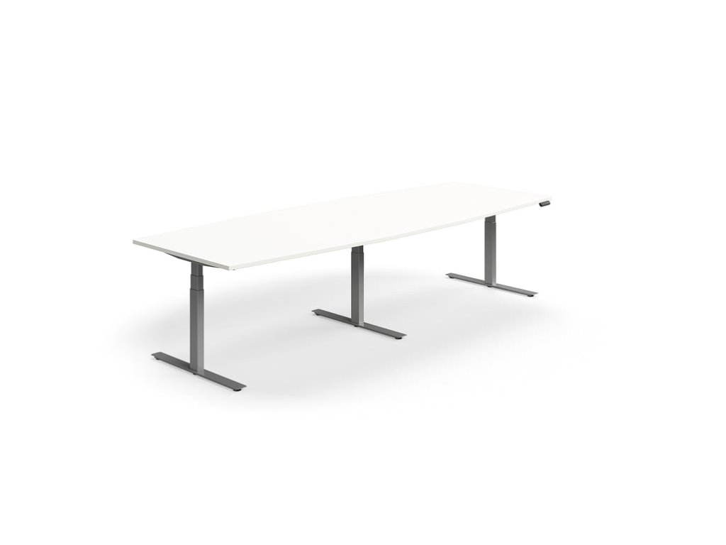 Höhenverstellbarer Besprechungstisch QBUS, oval, 3200x1200 mm, Gestell silber, weiß