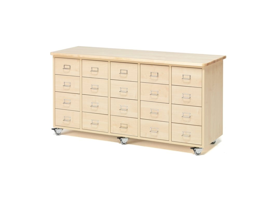 Kommode auf Rollen, 20 Schubladen, Griff mit Etikettenhalter, Birke