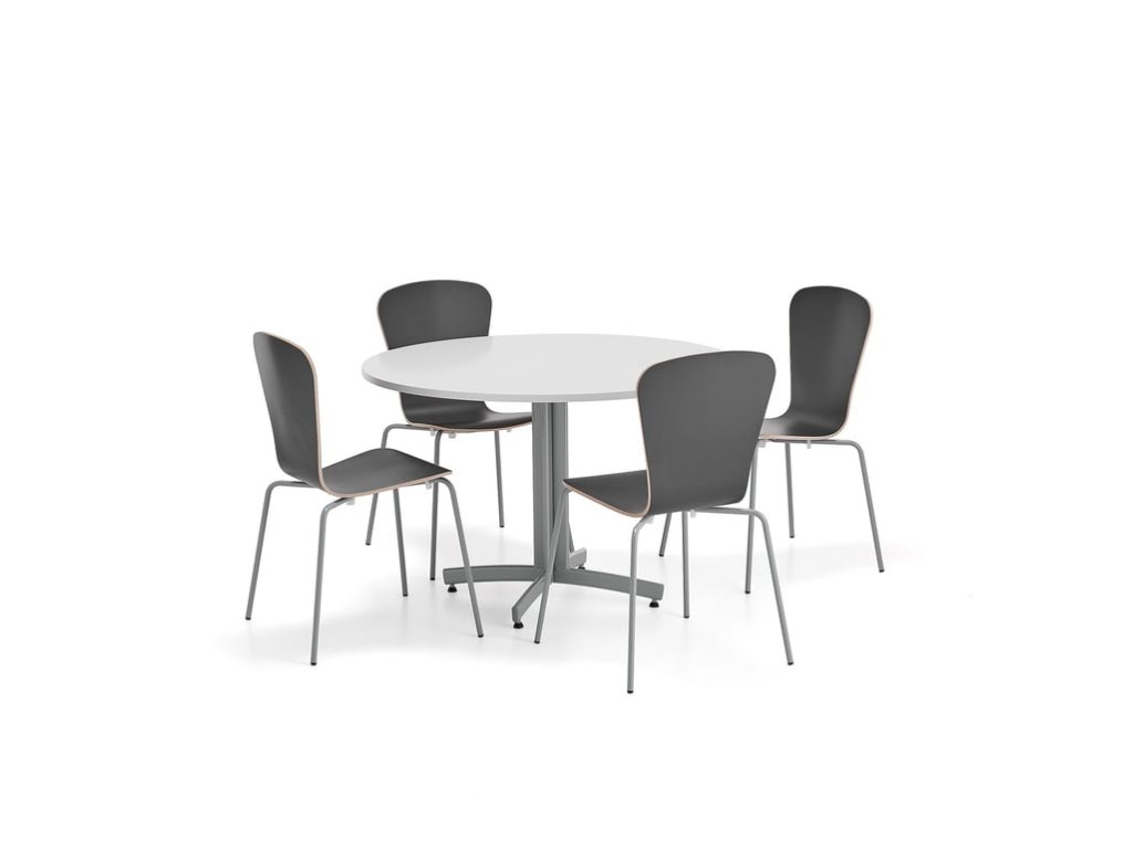 Möbelset SANNA + MILLA PLUS, 1 Tisch, 4 Stühle, silber/schwarz