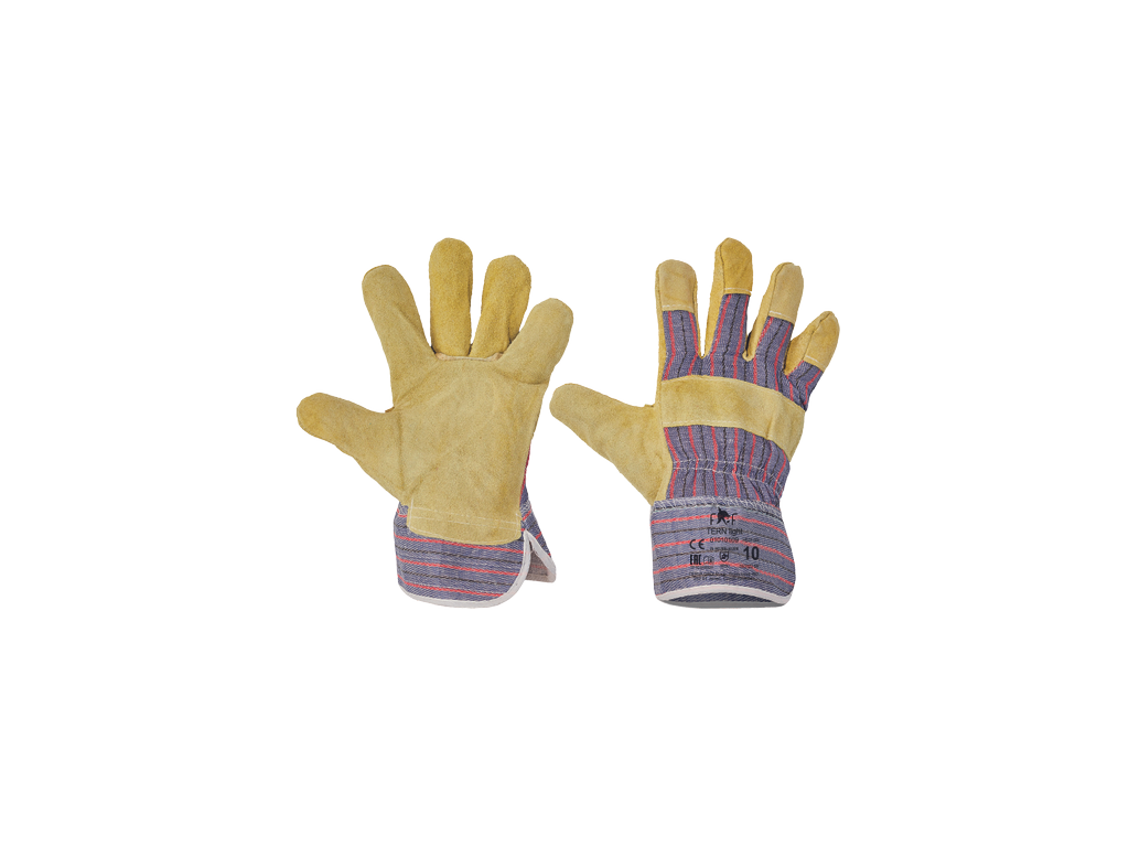 Material: Palm material: cow split leather, Reinforcement material: cow split leather, Gloves lining material: polyester, cotton, Cuff material: cotton, woven, Back material: cotton, woven