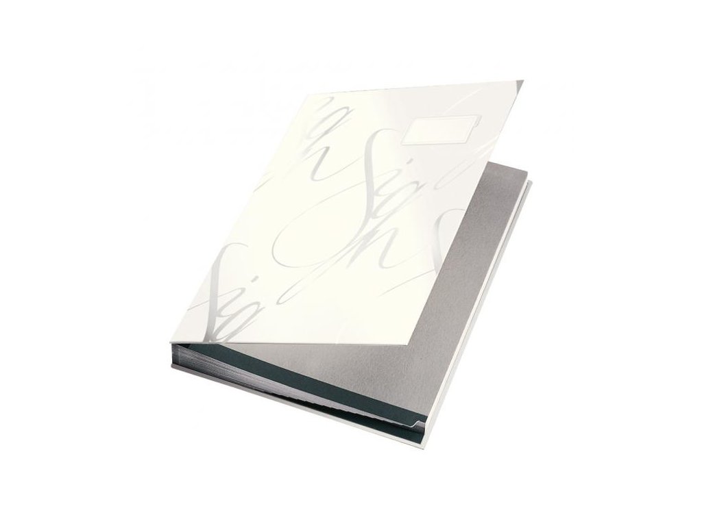 Reprezentatív aláírási könyv a fontos, aláírást igénylő dokumentumok rendezéséhez, pl. számlák, szerződések stb. Modern, friss dizájn, elöl részleges lakkozással. A könyv felületét selyemfóliával laminált papír borítja, mely kellemes tapintású, ugyanakkor védi a könyvet a víztől és a portól. 18 db speciális vastag kartonból készült válogatólap, aminek köszönhetően a hajtogatott papírok nem esnek ki a könyvből Leíró címke a címlapon (pl. tanszék vagy témavezető nevére). A bővíthető gerinc lehetővé teszi az aláírási könyv kapacitásának növelését. A könyv 90%-a 100%-ban újrahasznosított anyagból készült. Méretek 240 x 25 x 340 mm. Szín fehér.Kiegészítő paraméterek