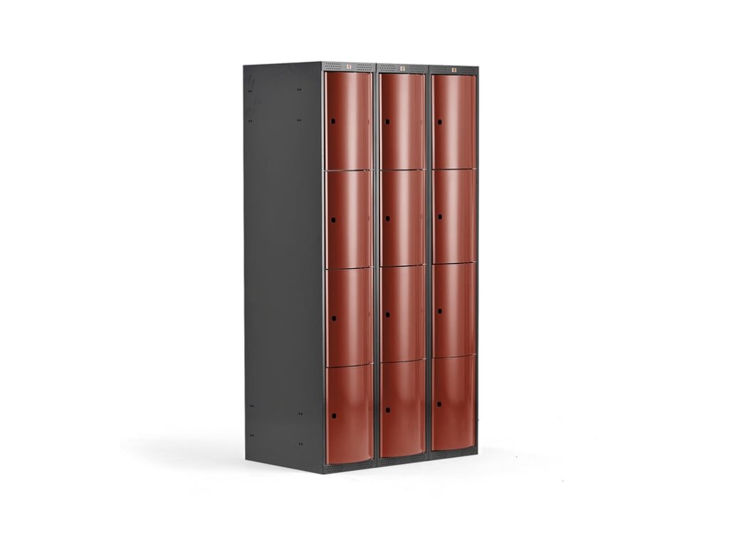Szekrény CURVE, 12 ajtós, 3 szekciós, piros