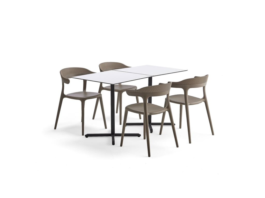 Durable dining set with a modern design, suitable for dining rooms and relaxation areas. The dining chairs are stackable, have comfortable seats and built-in armrests. The dining table has a thin table top made of laminate and a stylish frame. This elegant dining furniture set has an attractive modern design. It is durable and easy to keep clean, making it ideal for dining rooms and lounges. You can sit comfortably with your colleagues at two dining tables. You can either join the dining tables or separate them to accommodate two separate smaller groups. Creek stackable dining chairs are one piece and have rounded edges. The built-in armrests provide support for the hands and shoulders, which is very pleasant after several hours of work. You can comfortably lean on the comfortable backrest. The Becky dining table has a stylish frame and a thin top with beveled edges and rounded corners made of easy-care laminate. Thanks to its compact size, the table can easily fit into small spaces. At the same time, however, it is possible to arrange several tables in a row and create a larger table where more people can sit.Be the first who will post an article to this item!