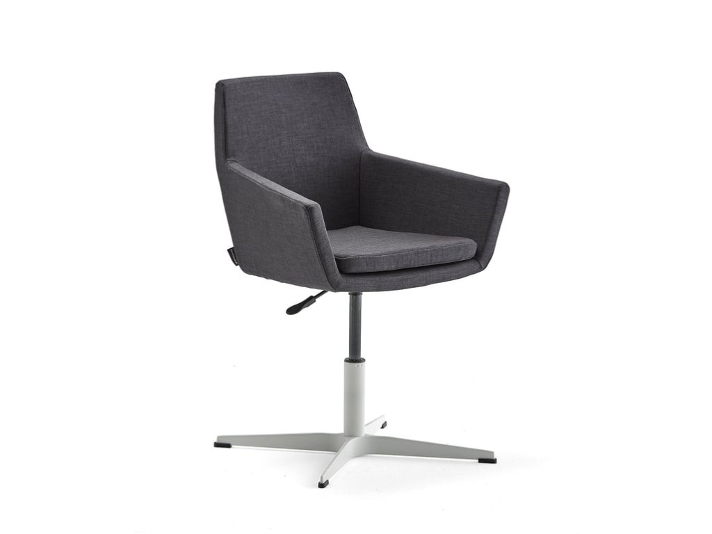 A conference chair with a tasteful, compact design that, despite the small demands on space, does not reduce comfort. The chair has a rotating stand and the height can be adjusted using a gas piston. In addition to conference rooms, it is also excellent for receptions, lounges and offices. It is ideal for use in business lounges and offices as well as conference rooms. The minimalist conference chair in the Scandinavian style is a combination of simplicity, comfort and a feeling of luxury. The stylish design ensures that it fits perfectly into most environments, from lounges to meeting rooms. The rotating base gives the sitter freedom of movement. The chair has a durable fabric cover available in several colors. The FAIRFIELD armchair can be easily combined with our other office and conference furniture, e.g. Lancaster chair, which comes in the same colors. The slim cross is made of durable aluminum. The height of the seat is adjustable using a gas piston.Be the first who will post an article to this item!
