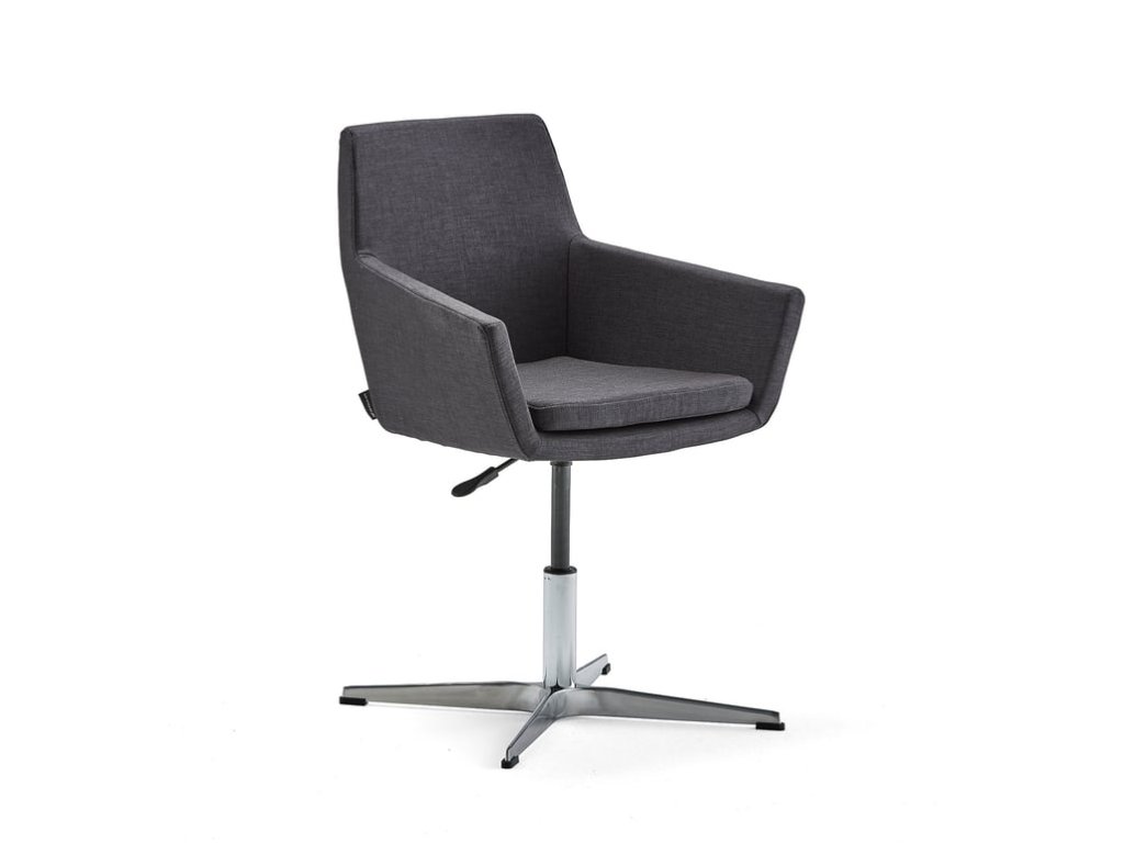 A conference chair with a tasteful, compact design that, despite the small demands on space, does not reduce comfort. The chair has a rotating stand and the height can be adjusted using a gas piston. In addition to conference rooms, it is also excellent for receptions, lounges and offices. An ideal solution for lounges, offices and meeting rooms. The minimalist conference chair in the Scandinavian style is a combination of simplicity, comfort and a feeling of luxury. The stylish design ensures that it fits perfectly into most environments, from lounges to meeting rooms. The rotating base gives the sitter freedom of movement. The chair has a durable fabric cover available in several colors. The FAIRFIELD armchair can be easily combined with our other office and conference furniture, e.g. Lancaster chair, which comes in the same colors. The slim star-shaped base is made of durable aluminum. The height of the seat is adjustable using a gas piston.Be the first who will post an article to this item!