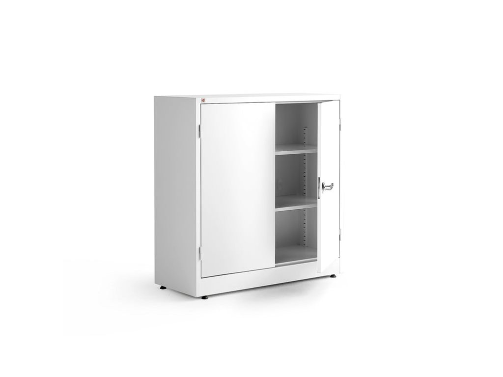Kvalitná kovová skriňa s pevným skeletom zo zváraných plechov, vhodná do dielne i do kancelárie. Skriňa je vybavená 2 výškovo nastaviteľnými policami, rektifikačnými nožičkami a chrómovanou kľučkou s trojbodovým zámkom, vrátane 2 kľúčov. Kvalitná kovová skriňa pre bezpečné skladovanie v každom prostredí. Skriňa má dostatok priestoru na uloženie náradia,skladových nádob, prepraviek, kancelárskych potrieb a ďalšie. Rektifikačné nožičky Vám pomôžu vyrovnať postavenie skrine na nerovnej podlahe. Skriňa má vo vnútri 3 police, z ktorých 1 je súčasťou skeletu a tvorí jej dno. Zvyšné 2 police sú výškovo nastaviteľné v intervale po 50 mm, takže si môžete upraviť vnútorný úložný priestor skrine úplne podľa Vašich potrieb. Každá polica má maximálnu nosnosť 50 kg pri rovnomernom rozložení záťaže. Ďalšie voliteľné príslušenstvo, police, sú dostupné ako voliteľné príslušenstvo, takže si môžete ľahko vytvoriť optimálne riešenie pre skladovanie. Kvalitná kovová skriňa s pevným skeletom zo zváraných plechov. Silné dvere zo zváraných plechov sú vystužené po celej výške a sú vybavené kľučkou s trojbodovým zámkom, vrátane 2 kľúčov. Týmto Vám skriňa poskytuje bezpečné skladovanie. Skelet je upravený bielou práškovou farbou, police sú biele a farba dvierok je voliteľná.Buďte prvý, kto napíše príspevok k tejto položke.