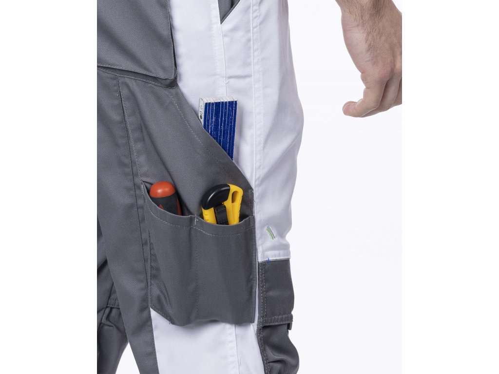 - breathable and lightweight pants with a bib with multifunctional pockets and anatomical shaping of the knees