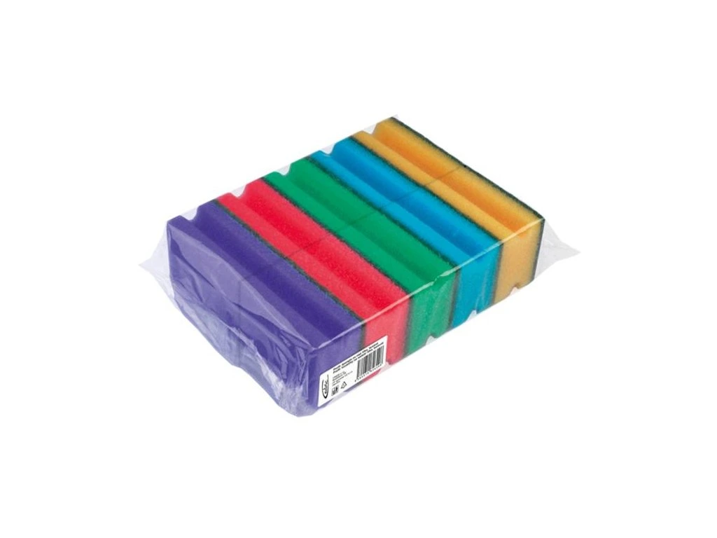 Profilowana gąbka do naczyń. Opakowanie 10 szt. Wymiary: 4,5 x 6,5 x 8,5 cm. Mix pięciu kolorów.Parametry dodatkowe