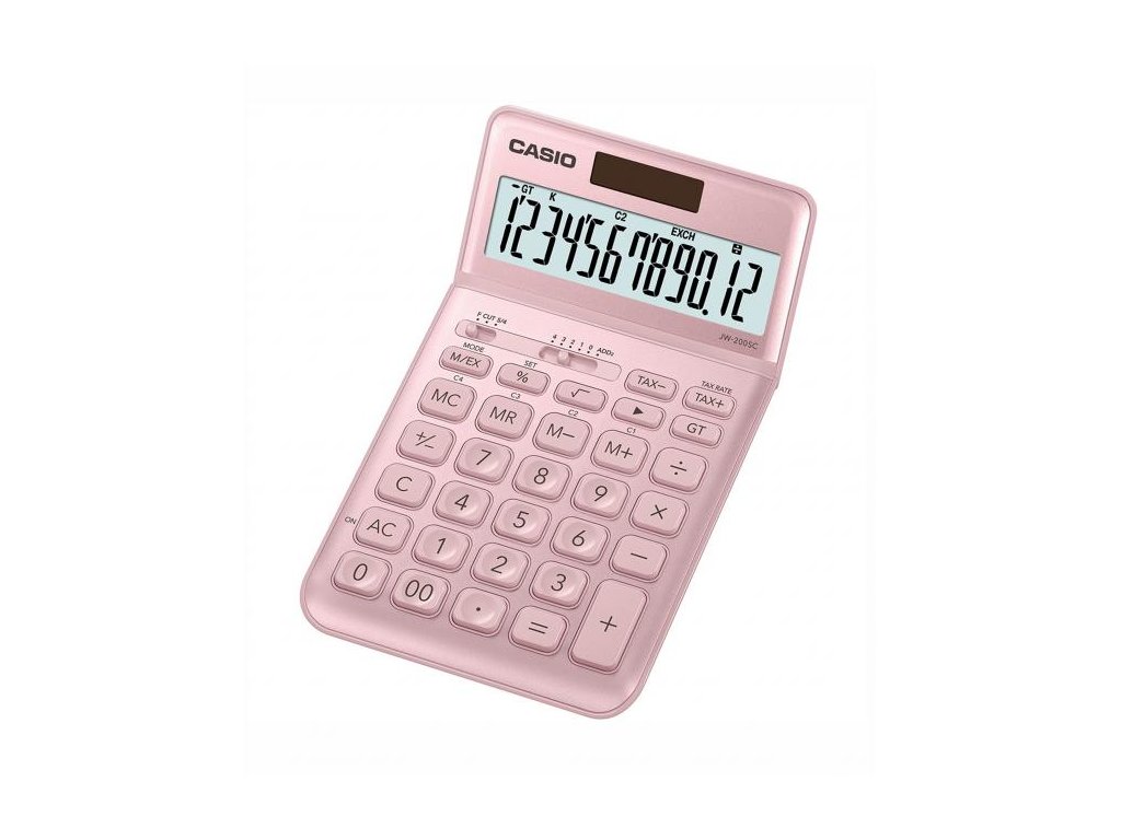 Kalkulator biurkowy z dużym 12-cyfrowym odchylanym wyświetlaczem LCD z wyświetlaniem funkcji i metalową kolorową obudową. Przycisk korekty i przyciski do obliczania pierwiastka kwadratowego, podatków i przeliczania walut. Kolor różowy.Specyfikacja techniczna: