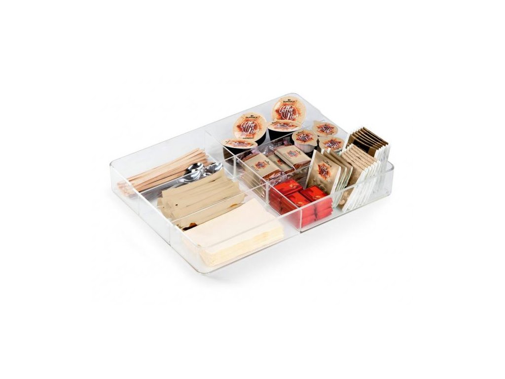 Włóż do gniazda modułu przekąskowego COFFEE POINT BOX. Idealny do przechowywania sztućców, łyżek, mieszadeł i innych akcesoriów do przekąsek. Nadaje się również do jedzenia. Materiał wysokiej jakości akryl, można prać w pralce. Wymiary (szer. x gł. x wys.) 242 x 329 x 48 mm. Kolor przezroczysty przezroczysty.Parametry dodatkowe