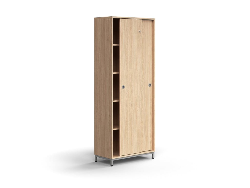 Szafka z drzwiami przesuwnymi QBUS, 4 półki, na nogach, z uchwytem, 2020x800x400 mm, srebrny, dąb