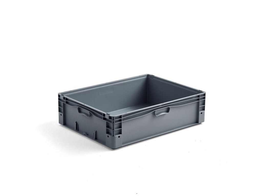 Stackable, strong and hygienic crash-resistant crate. Compatible with seropallets. The AJ EURO plastic crate is very durable and can withstand rough handling and a heavy load of shocks. It is designed for use with sero-pallets and is especially suitable, for example, in the environment of the engineering industry. If you want to save space, you can store crates one on top of the other, regardless of their shape and size. The inside of the adno is smooth, which makes it suitable for use on conveyors. At the same time, the design of the crate allows for very easy cleaning. The crate is made of recycled polypropylene. It is UV-resistant, hygienic and suitable for use in the food industry, which is why it fits perfectly into most work environments. In addition, the AJ EURO container can withstand temperatures ranging from -40°C to 90°C and also the action of most chemical substances. It has holes on the short sides for easy grip (not all sizes). Covers are sold separately as accessories.Be the first who will post an article to this item!