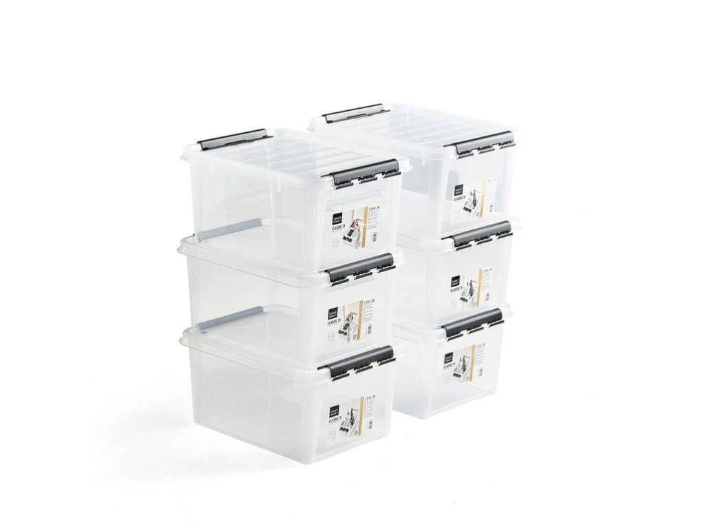 Plastic box with LEE lid, 32 L, 6 pcs, 500x390x260 mm, transparent