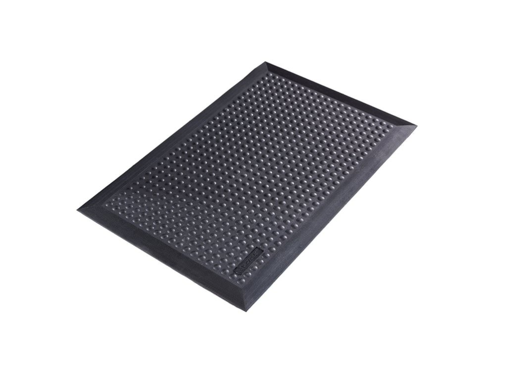 A soft mat with a bubble surface that reduces the load on the musculoskeletal system and stimulates blood circulation. Antistatic. The work mat is made of 100% natural rubber and does not contain silicone. It has an ergonomic design. It adheres to the floor and stays firmly in place. It is equipped with air cushions, thanks to which it has an anti-fatigue effect. In combination with the rubber surface, it has a light impression and absorbs shocks well. The mat is intended for an individual workplace. It is especially suitable for environments with increased friction, where electrostatic discharges may occur. The bubble surface reduces the burden on the body. The mat has safety bevels on all four sides. They minimize the risk of tripping and allow easy handling of the trolley on the mat. Natural rubber is not resistant to oils and organic solvents.Be the first who will post an article to this item!