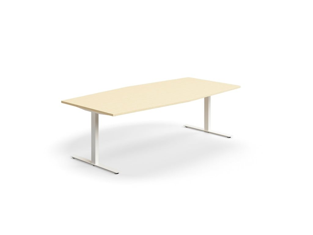 Conference table QBUS, oval, 2400x1200 mm, T-frame, white frame, birch