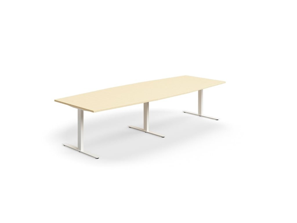 Konferenztisch QBUS, oval, 3200x1200 mm, T-Gestell, weißes Gestell, Birke
