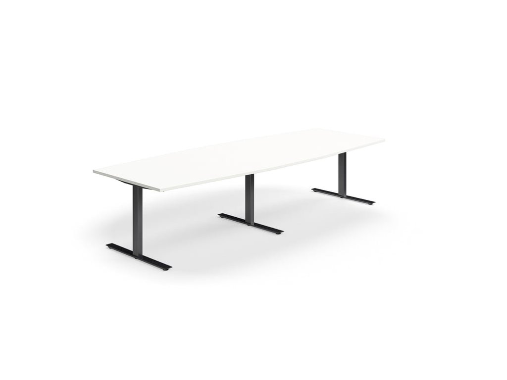 Conference table QBUS, oval, 3200x1200 mm, T-frame, black frame, white