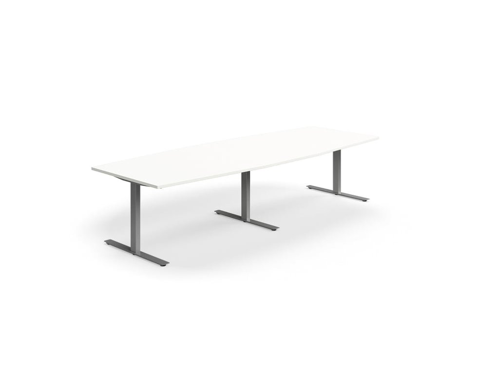 Conference table QBUS, oval, 3200x1200 mm, T-frame, silver frame, white
