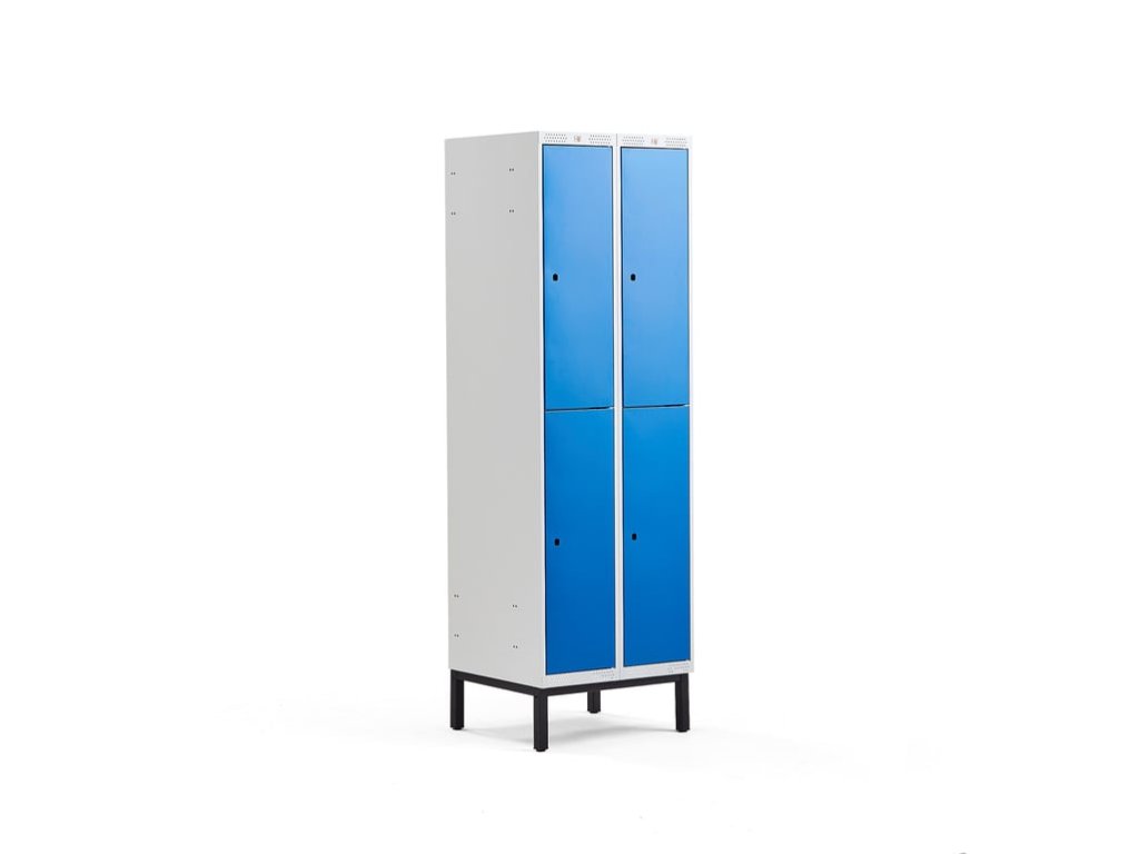 The storage cabinets are equipped with a common frame on legs, a hanging rod in each compartment and reinforced doors with rubber stops. Ventilation holes in the upper and lower part. Supplied without locks. The cabinets are made of solid steel sheets that are powder coated. Surface treatment with powder coating ensures scratch resistance during more demanding daily use. The frame and door are made of sheet steel with a thickness of 0.7 mm and 0.8 mm. Metal lockers are ideal for storing personal belongings in workplaces, gyms, schools, exhibition spaces and other public spaces. Reinforced doors have rubber stoppers for smooth and quiet closing. Ventilation holes in the lower and upper part of the frame allow moisture and odors to be vented. The wardrobe comes with a rail with two hooks and hanging straps for convenient storage of clothes. The cabinet is supplied with a practical frame on black powder-coated steel legs and rectification feet. A frame with legs lifts the cabinets off the floor, making it easier to access the bottom and clean under the cabinet. This is especially useful in environments where hygiene is important. Choose from a variety of accessories and combine multiple units as needed to create a suitable solution for storing personal belongings. Metal cabinets are supplied without locks, allowing you to choose the lock system that best suits your requirements.Be the first who will post an article to this item!