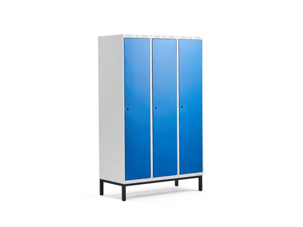 A wardrobe with ventilation holes, a shelf for storage and a rod with two hooks for hanging. Door with stop for opening 90° and rubber shock absorbers. Comes with a frame on legs. Locks are sold separately (see accessories). High-quality cabinets offer many customization options. The cabinets are made of solid, fully welded steel sheets that are powder coated. The door has rubber stoppers for smooth and quiet closing. Ventilation holes in the lower and upper part of the frame ventilate moisture and odors. Use lockers to store clothes and personal belongings in workplaces, gyms, schools, etc. The wardrobes come with accessories for storing clothes, a shelf for storage and a rod with two hooks for hanging. The cabinet is supplied with a practical frame on black powder-coated steel legs and rectification feet. A frame with legs lifts the cabinets off the floor, making it easier to access the bottom and clean under the cabinet. This is especially useful in environments where hygiene is important. Add accessories to the cabinets and customize the cabinet according to your needs. Choose from several different types of locks and accessories. All accessories are sold separately.Be the first who will post an article to this item!