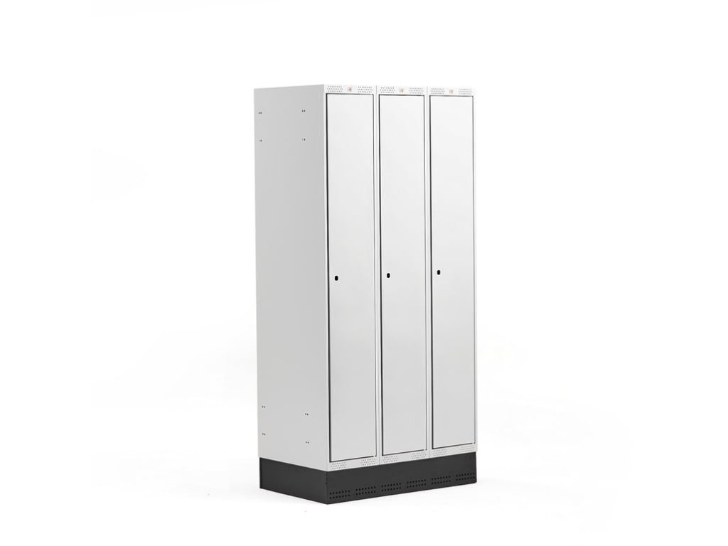 Wardrobe CLASSIC, with plinth, 3 sections, 1890x900x550 mm, gray