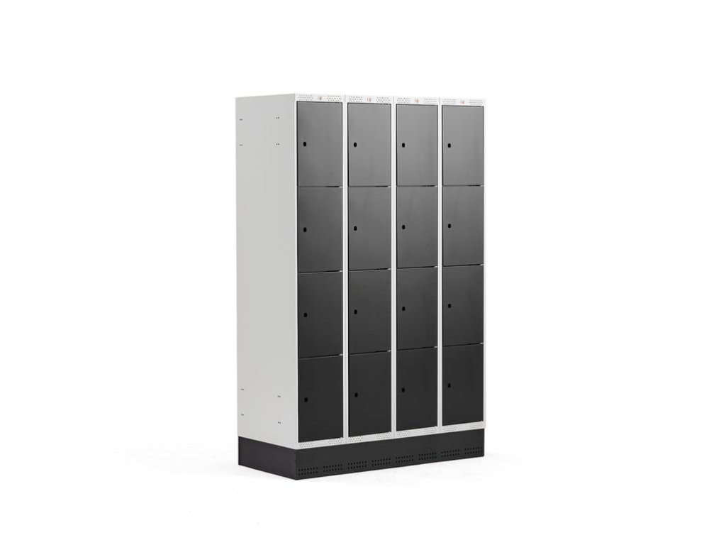 Storage cabinet for personal belongings, with plinth and reinforced door with rubber dampers. Ventilation holes in the upper and lower part. Supplied without locks. The cabinets are made of solid, fully welded steel sheets that are powder coated. Surface treatment with powder coating ensures scratch resistance during more demanding daily use. The frame and door are made of sheet steel with a thickness of 0.7 mm and 0.8 mm. Reinforced doors have rubber stoppers for smooth and quiet closing. Ventilation holes in the lower and upper part of the frame allow moisture and odors to be vented. Metal lockers are ideal for storing personal belongings in workplaces, gyms, schools, exhibition spaces and other public spaces. The cabinet is supplied with a practical plinth made of black powder-coated steel. The base frame raises the cabinet slightly from the floor. It prevents the formation of dust and dirt under the cabinet. Choose from a variety of accessories and combine multiple units as needed to create a suitable solution for storing personal belongings. Metal cabinets are supplied without locks, allowing you to choose the lock system that best suits your requirements.Be the first who will post an article to this item!