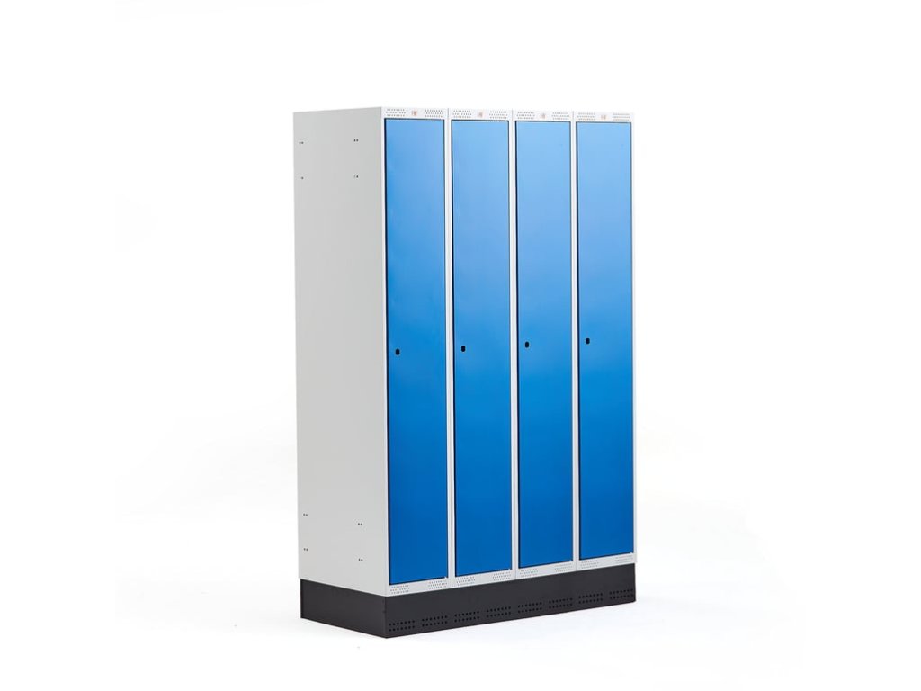 Wardrobe CLASSIC, with plinth, 4 sections, 1890x1200x550 mm, blue