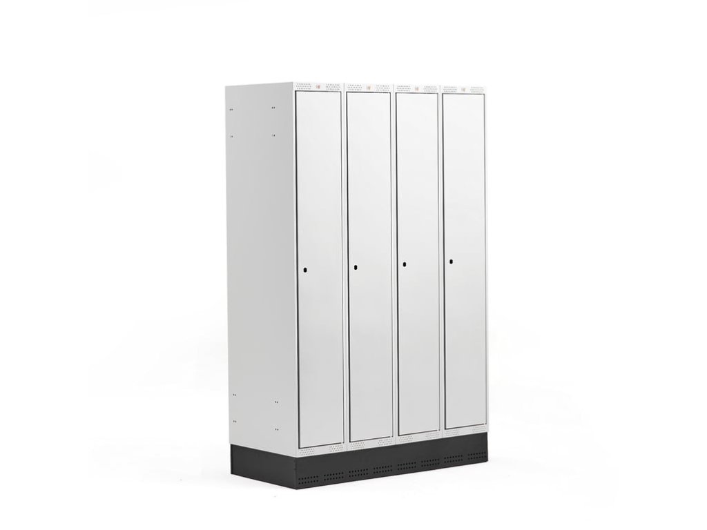 A wardrobe with ventilation holes, a shelf for storage and a rod with two hooks for hanging. Door with stop for opening 90° and rubber shock absorbers. The cabinet is equipped with a plinth base. Locks are sold separately (see accessories). High-quality cabinets offer many customization options. The cabinets are made of solid, fully welded steel sheets that are powder coated. The door has rubber stoppers for smooth and quiet closing. Ventilation holes in the lower and upper part of the frame ventilate moisture and odors. Use lockers to store clothes and personal belongings in workplaces, gyms, schools, etc. The wardrobes come with accessories for storing clothes, a shelf for storage and a rod with two hooks for hanging. The cabinet is supplied with a practical plinth made of black powder-coated steel. The base frame raises the cabinet slightly from the floor. It prevents the formation of dust and dirt under the cabinet. Add accessories to the cabinets and customize the cabinet according to your needs. Choose from several different types of locks and accessories. All accessories are sold separately.Be the first who will post an article to this item!