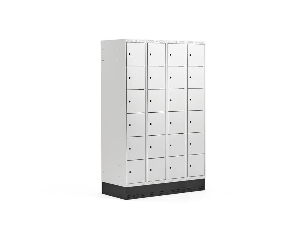 Cabinet for storing personal belongings, with reinforced doors with rubber dampers. Doors equipped with rubber dampers for smooth and quiet closing. Complete with the lock that best suits your needs. These storage cabinets are made of solid powder-coated sheet steel. Surface treatment with powder coating ensures scratch resistance during more demanding daily use. The frame and door are made of sheet steel with a thickness of 0.7 mm and 0.8 mm. Reinforced doors have rubber stoppers for smooth and quiet closing. Ventilation holes in the lower and upper part of the frame allow moisture and odors to be vented. Metal lockers are ideal for storing personal belongings in workplaces, gyms, schools, exhibition spaces and other public spaces. The cabinet is supplied with a practical plinth made of black powder-coated steel. The plinth makes cleaning easier and prevents things from falling under the cabinet. It prevents the formation of dust and dirt under the cabinet. Choose from a variety of accessories and combine multiple units as needed to create a suitable solution for storing personal belongings. Metal cabinets are supplied without locks, allowing you to choose the lock system that best suits your requirements.Be the first who will post an article to this item!